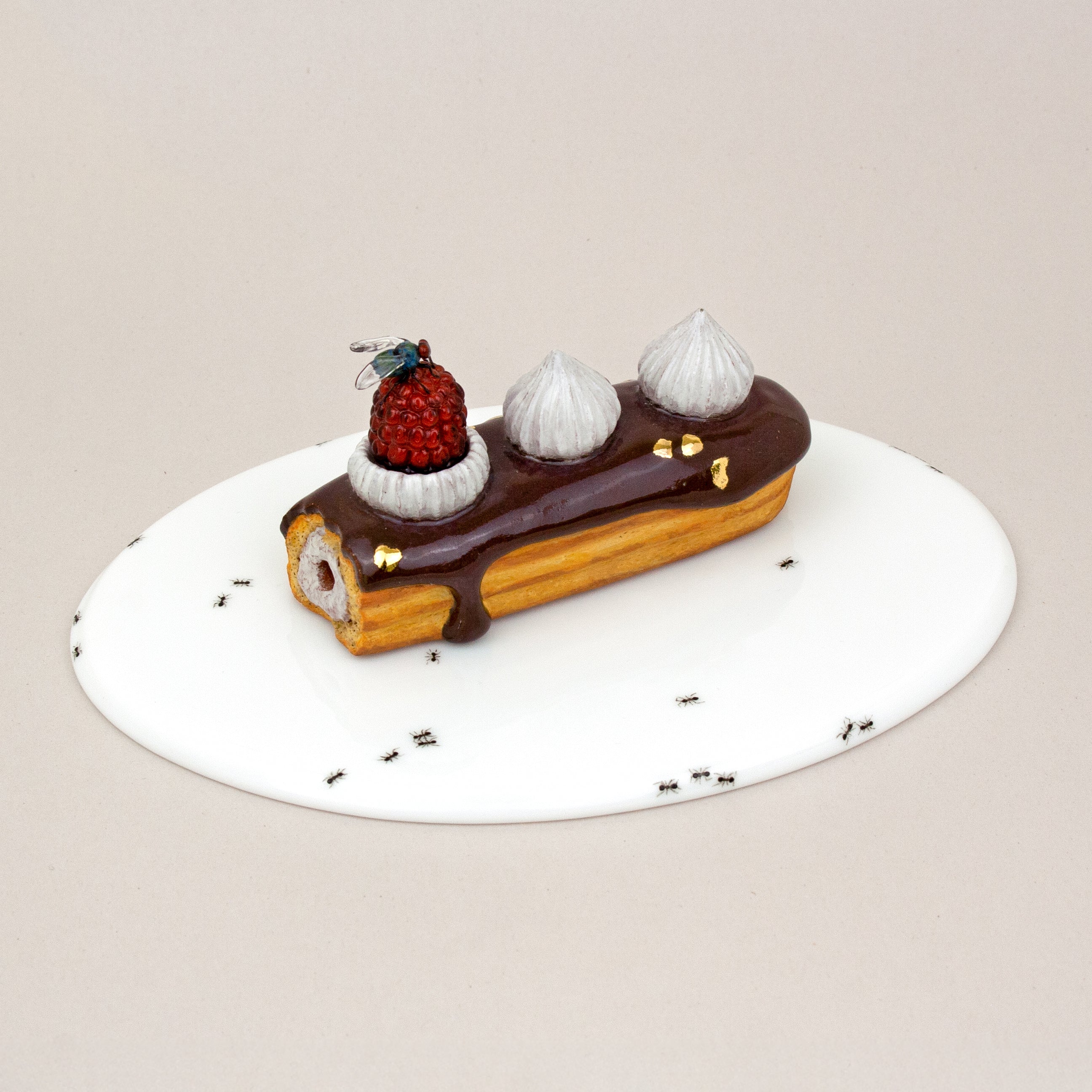 Borosilicate glass (cicadas made by Jessica), synthetic opals, copper, reconstructed coral, resin, pigments, silver